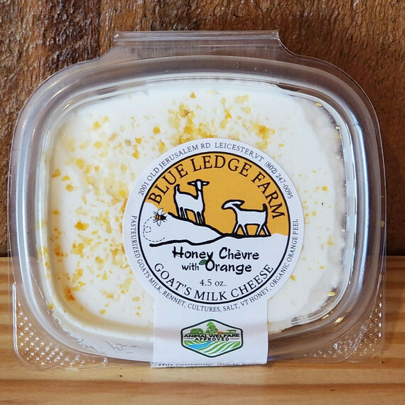 Fresh chèvre mixed with local Vermont honey and sprinkled with Organic Orange peel zest. It's like a citrus-y summer day!